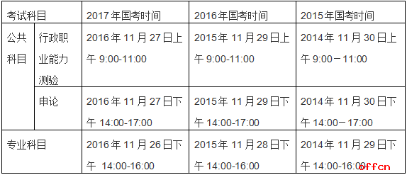 眾所周知參加國家公務員考試的考生都要參加公共科目的考試,但有些部門職位也要參考專業(yè)科目考試,銀監(jiān)會就是其中之一。近三年來銀監(jiān)會筆試科目及時間如下: