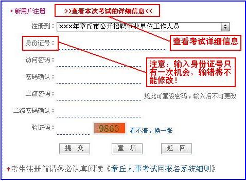 2、已注冊考生憑報(bào)名序號和密碼登錄個(gè)人信息界面,新注冊考生單擊“新用戶注冊”鏈接,進(jìn)入注冊頁面,如下圖:
