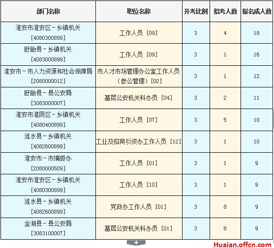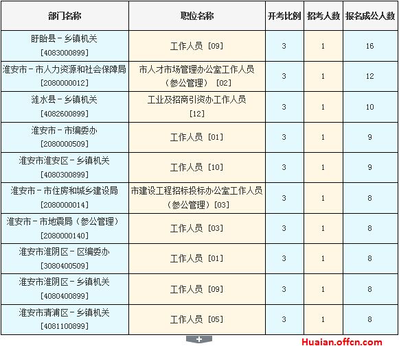 淮安市報(bào)名競(jìng)爭(zhēng)最激烈的十大職位
