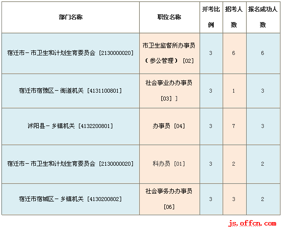 宿遷市考報(bào)名人數(shù)最多的五大職位