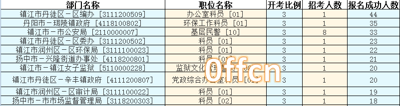 鎮(zhèn)江市報(bào)名競(jìng)爭(zhēng)最激烈的十大職位