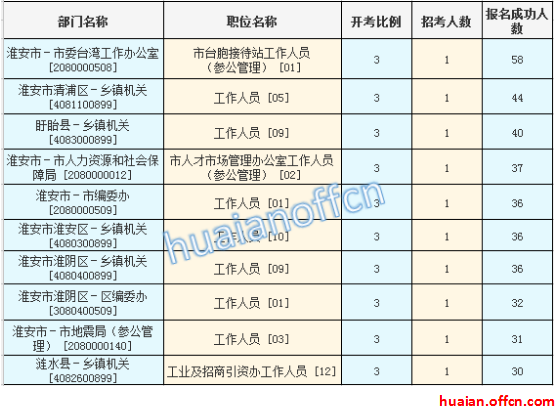 淮安市報(bào)名競(jìng)爭(zhēng)最激烈的十大職位