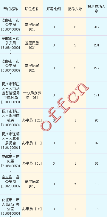 揚州市考報名人數(shù)最多的十大職位