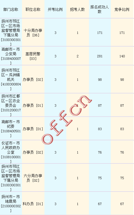 揚州市報名競爭最激烈的十大職位