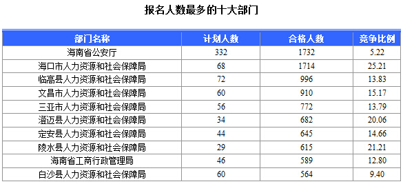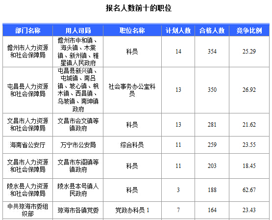 報(bào)名通過(guò)審核人數(shù)前十的職位主要集中在各大人力資源局具體信息如下: