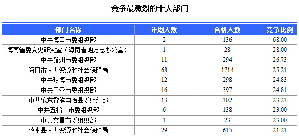 為幫助廣大考生更清晰的了解今日?qǐng)?bào)名情況,中公網(wǎng)校整理了報(bào)名人數(shù)前十位的部門以及競(jìng)爭(zhēng)比例最激烈的十大部門,供廣大考生參考: