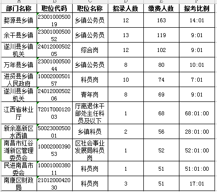 一、江西省各職位報(bào)名人數(shù)分析