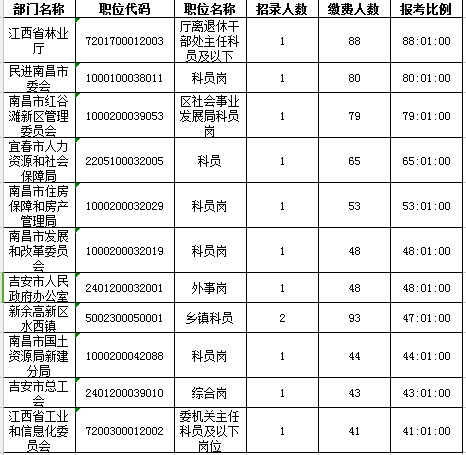 2016年江西公務(wù)員報(bào)名人數(shù)共14107:最熱競(jìng)爭(zhēng)88:1(截止24日17時(shí))