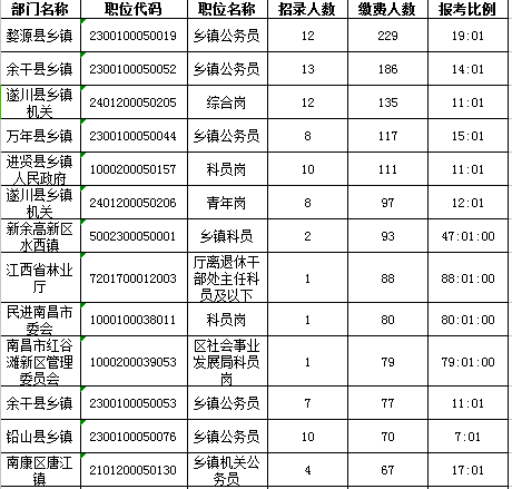 一、江西省各職位報(bào)名人數(shù)分析