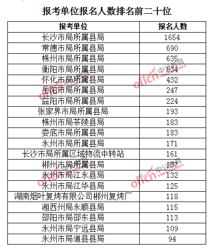 一、湖南煙草專賣局各報考單位報名人數(shù)分析