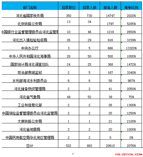 截止21日16時,2017國考河北地區(qū)所有職位報名情況