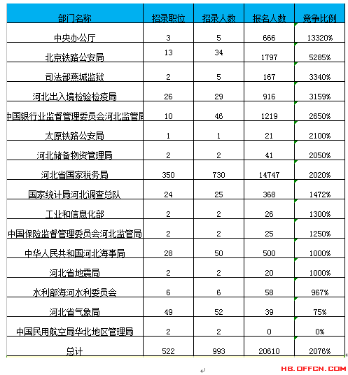 截止到21日16時,通過審核人數(shù)前三位的部門依次是:河北省國家稅務(wù)局、北京鐵路公安局、中國銀行業(yè)監(jiān)督管理委員會河北監(jiān)管局,三部門通過審核總?cè)藬?shù)達(dá)17763人,占通過審核總?cè)藬?shù)的86%。