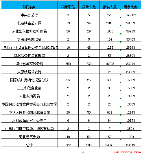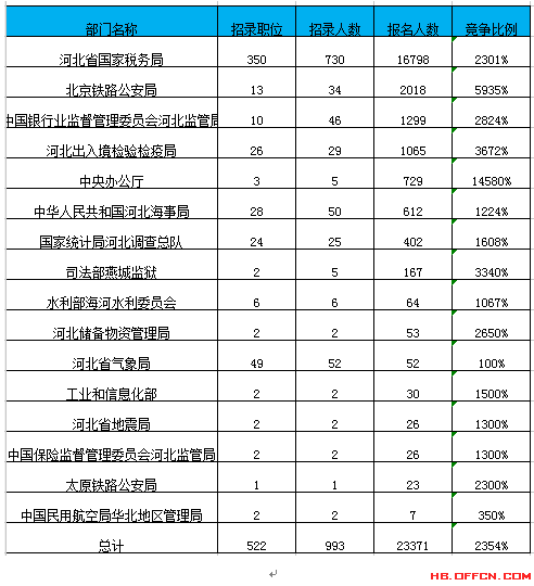 截止22日8時,2017國考河北地區(qū)所有職位報名情況