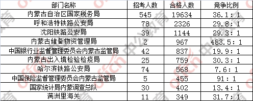 為幫助廣大考生更清晰的了解今日報名情況,內(nèi)蒙古中公教育整理了審核通過人數(shù)前十位的部門,供廣大考生參考: