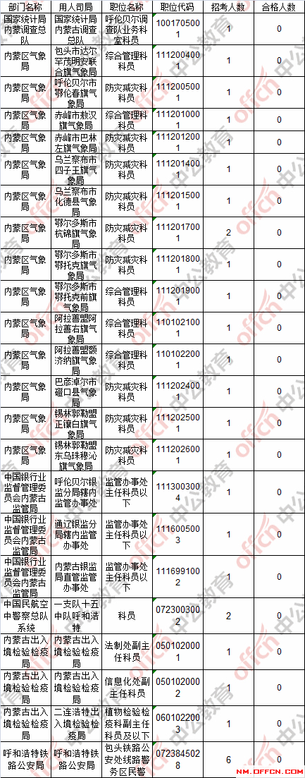 截止到22日16時,工作地點在內(nèi)蒙古23個職位無人報考。具體職位如下: