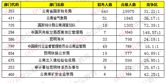 為幫助廣大考生更清晰地了解今日?qǐng)?bào)名情況,云南中公網(wǎng)校整理了審核通過(guò)人數(shù)部門(mén)排名,供廣大考生參考: