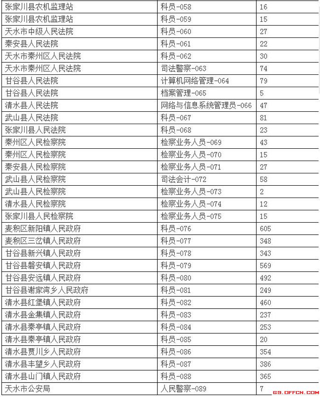 2017年度甘肅省考試錄用機關(guān)公務(wù)員和參照公務(wù)員法管理單位工作人員,網(wǎng)上報名已進入尾聲,3月20日24時提交報考申請將結(jié)束。根據(jù)省考錄辦統(tǒng)計,截至3月20日17時,天水市最為激烈的為秦州區(qū)地稅局,已有594人報名。令人意外的是,天水市財政局科員-004崗位爆出冷門,只有7人報考。