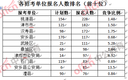 二、常德公務(wù)員報名人數(shù):各招考單位分析