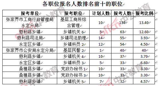 一、張家界公務(wù)員報(bào)名人數(shù):各職位分析