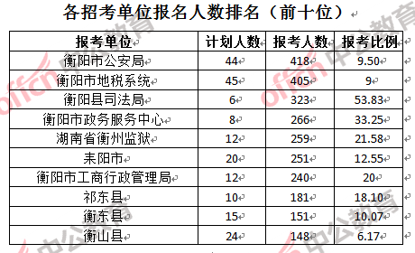 二、衡陽(yáng)公務(wù)員報(bào)名人數(shù):各招考單位分析