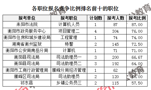一、衡陽(yáng)公務(wù)員報(bào)名人數(shù):各職位分析