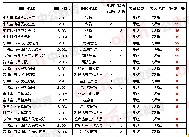 中公網(wǎng)校為參加2014年黑龍江省公務(wù)員考試的考生整理截止至5月18日早9點的雙鴨山考區(qū)繳費人數(shù),由于報名網(wǎng)站報名情況每30分鐘統(tǒng)計一次,數(shù)據(jù)可能會有細微差異,所有數(shù)據(jù)僅供大家參考。