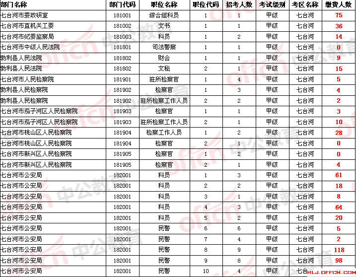 中公網(wǎng)校為參加2014年黑龍江省公務(wù)員考試的考生整理截止至5月17日早9點的繳費人數(shù),由于報名網(wǎng)站報名情況每30分鐘統(tǒng)計一次,數(shù)據(jù)可能會有細(xì)微差異,所有數(shù)據(jù)僅供大家參考。