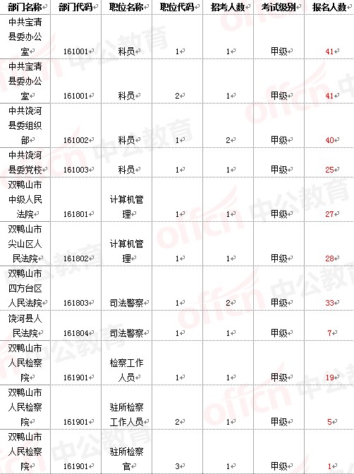 黑龍江中公教育為參加2014年黑龍江省公務員考試的考生整理截止至5月19日早9點的雙鴨山考區(qū)繳費人數(shù),由于報名網(wǎng)站報名情況每30分鐘統(tǒng)計一次,數(shù)據(jù)可能會有細微差異,所有數(shù)據(jù)僅供大家參考。