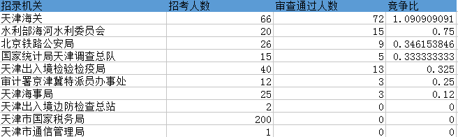 截止到30日18時,通過審核人數(shù)前三位的部門依次是:天津海關(guān)、水利部海河水利委員會、北京鐵路公安局,三部門通過審核總?cè)藬?shù)達(dá)100人。