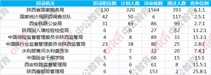 截至到31日9時(shí),通過(guò)審核人數(shù)前三位的部門依次是:陜西省國(guó)家稅務(wù)局、國(guó)家統(tǒng)計(jì)局陜西調(diào)查總隊(duì)、西安鐵路公安局,三部門通過(guò)審核總?cè)藬?shù)達(dá)609人,占通過(guò)審核總?cè)藬?shù)的79.4%。