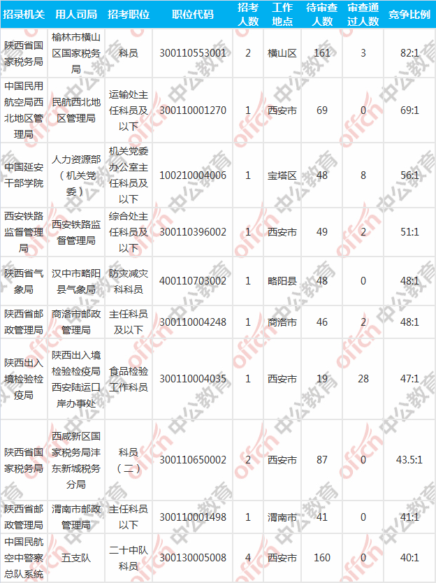 [31日9時(shí)]2018國考報(bào)名數(shù)據(jù):陜西767人過審 最熱職位82:1