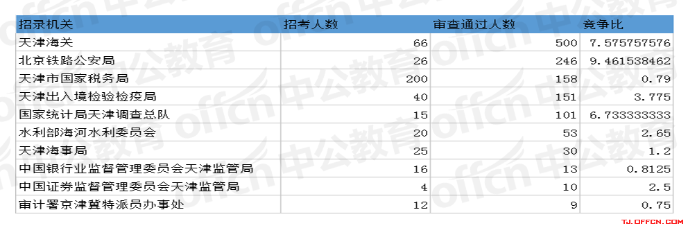 截止到31日18時,通過審核人數(shù)前三位的部門依次是:天津海關、北京鐵路公安局、天津市國家稅務局,三部門通過審核總人數(shù)達904人。