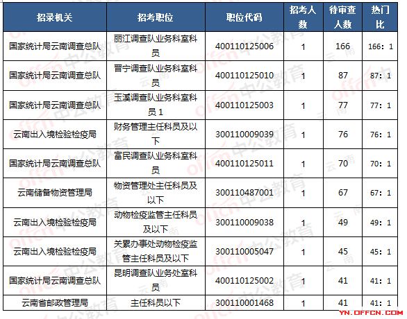 當(dāng)前最受歡迎的崗位是國家統(tǒng)計(jì)局云南調(diào)查總隊(duì),部門代碼:135125,麗江調(diào)查隊(duì)業(yè)務(wù)科室科員崗位,職位代碼:400110125006 ,招錄1人,166人處于待審狀態(tài),詳情如下圖: