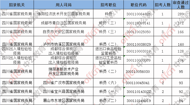第三日報名通過審核人數前十的職位主要集四川省國家稅務局等部門,具體信息如下: