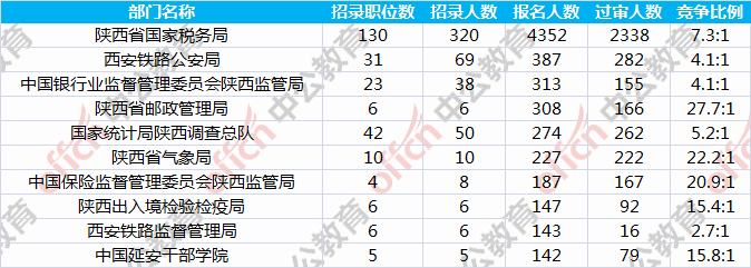 截至到1日16時(shí),通過審核人數(shù)前三位的部門依次是:陜西省國(guó)家稅務(wù)局、西安鐵路公安局、國(guó)家統(tǒng)計(jì)局陜西調(diào)查總隊(duì),三部門通過審核總?cè)藬?shù)達(dá)2882人,占通過審核總?cè)藬?shù)的73.9%。
