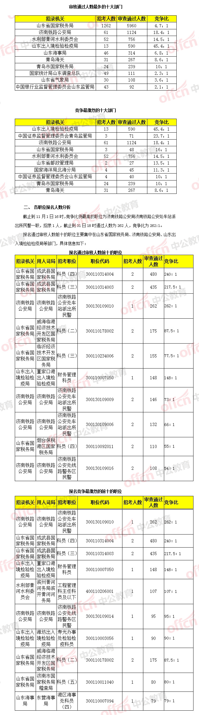 [11月1日16時(shí)]2018國考報(bào)名數(shù)據(jù):山東14979人報(bào)名 9901人過審 最熱職位已達(dá)262:1