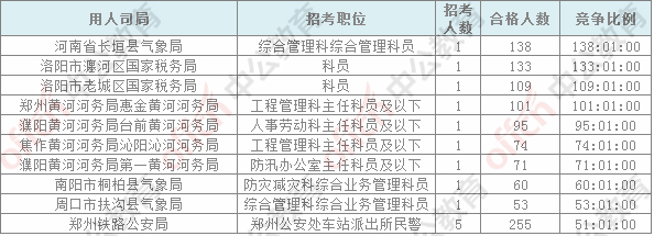截止到11月1日16時,競爭比例的職位為河南省長垣縣氣象局的綜合管理科綜合管理科員一職位,招錄1人,截止到11月1日16時通過人數(shù)為138人,報名開始僅兩日就已經(jīng)進入“百里挑一”了。