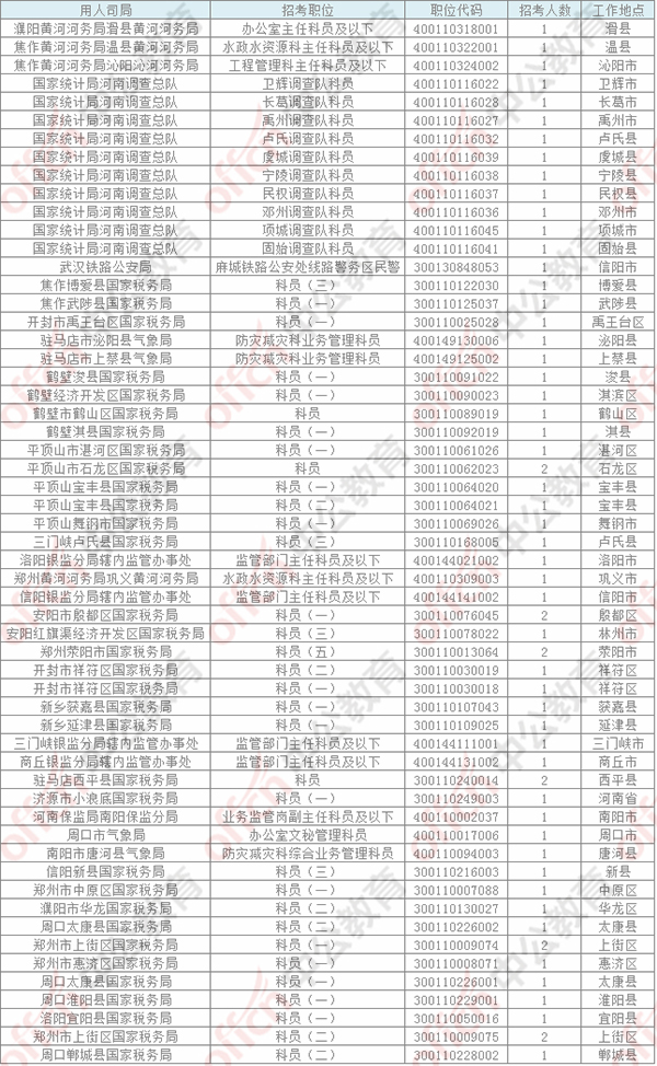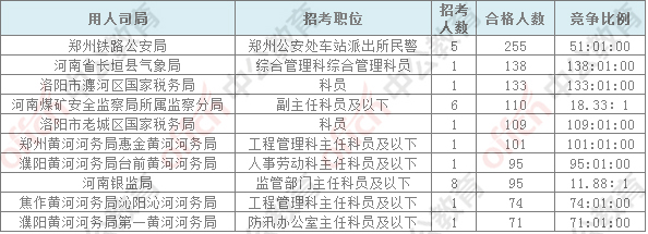報名通過審核人數(shù)前十的職位主要集中在水利部黃河水利委員會、鄭州鐵路公安局、河南省氣象局、河南省國家稅務局,具體信息如下: