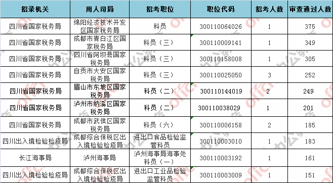 第四日?qǐng)?bào)名通過審核人數(shù)前十的職位主要集四川省國(guó)家稅務(wù)局等部門,具體信息如下: