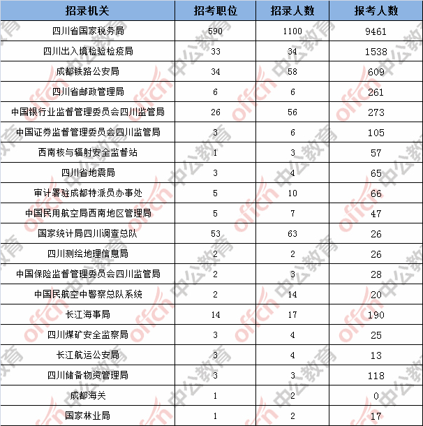 為幫助廣大考生更清晰的了解今日?qǐng)?bào)名情況,四川中公教育整理了已審核通過人數(shù)的部門,此數(shù)據(jù)供廣大考生參考: