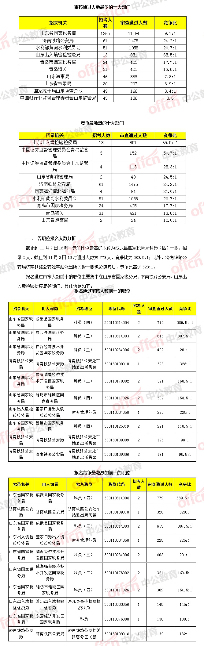 [11月2日16時]2018國考報名數(shù)據(jù):山東報名人數(shù)破2萬 17272人過審 最熱職位已達389.5:1