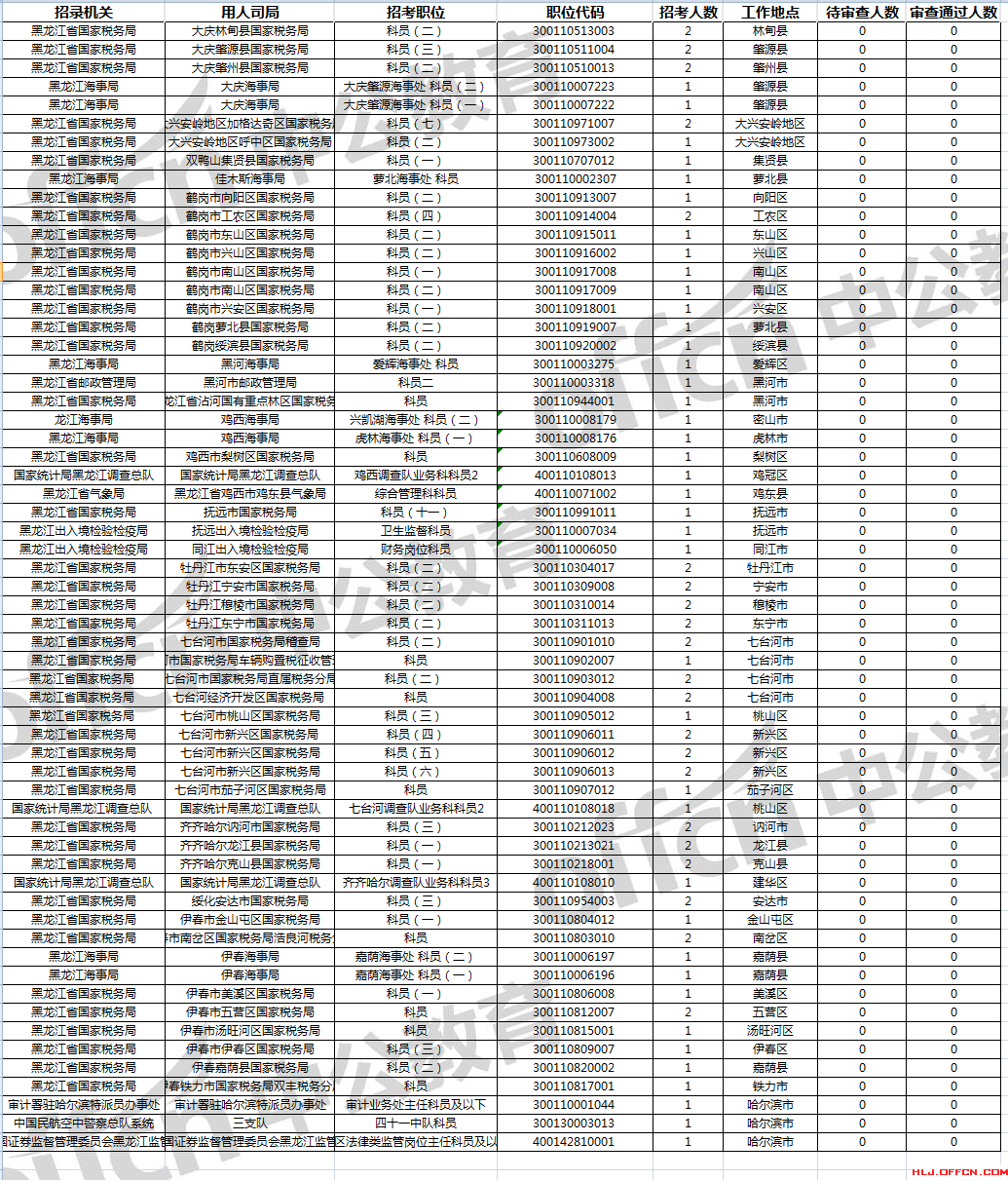 【11月3日11時】2018黑龍江國考報名人數(shù)統(tǒng)計分析61個崗位無人報考