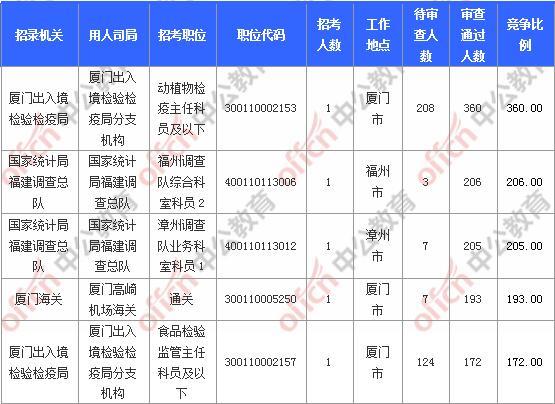 [11月3日16時]2018國考報名人數(shù)統(tǒng)計:福建報名8351人,最熱職位360:1