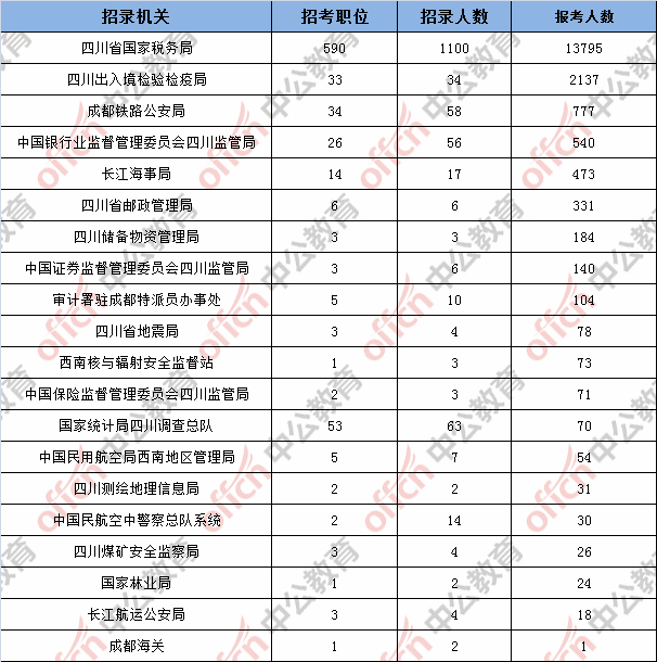 2018國(guó)考報(bào)名四川地區(qū)18957人過(guò)審,最熱職位453:1