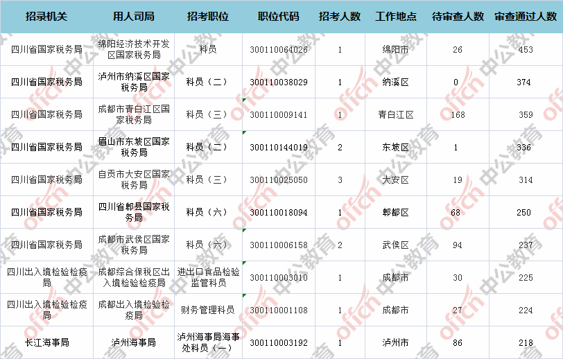 第五日?qǐng)?bào)名通過(guò)審核人數(shù)前十的職位主要集四川省國(guó)家稅務(wù)局等部門,具體信息如下: