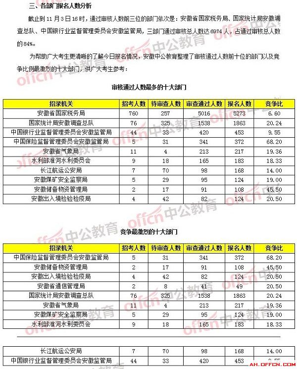 【11月3日16時(shí)】2018國(guó)考報(bào)名人數(shù)統(tǒng)計(jì):安徽8269人通過審核,最熱職位107:1