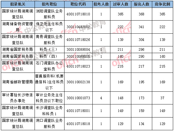 湖南國(guó)考報(bào)名人數(shù)排名前十的職位
