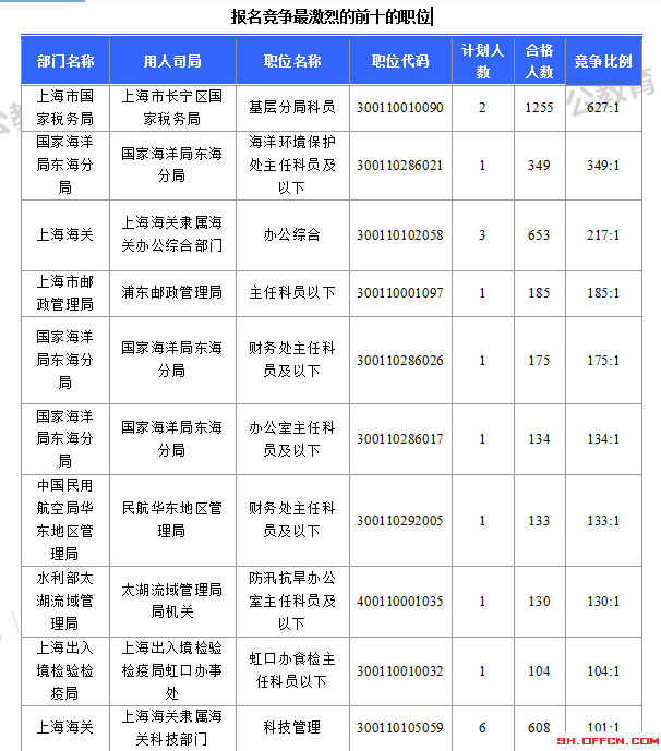 報(bào)名競(jìng)爭(zhēng)最激烈的前十的職位