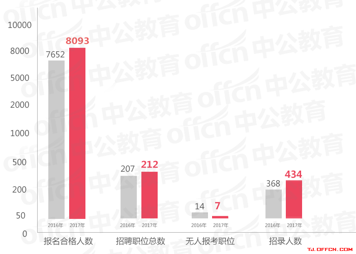 去年的招錄人數(shù)為368人,同期(報名第七天)的過審人數(shù)為7652人,今年的過審人數(shù)明顯增加,具體信息如下: