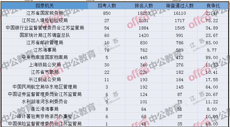 【11月5日16時(shí)】2018國(guó)考江蘇地區(qū)報(bào)名統(tǒng)計(jì):23162人已過(guò)審,最熱職位385:1,仍有23個(gè)職位無(wú)人報(bào)考